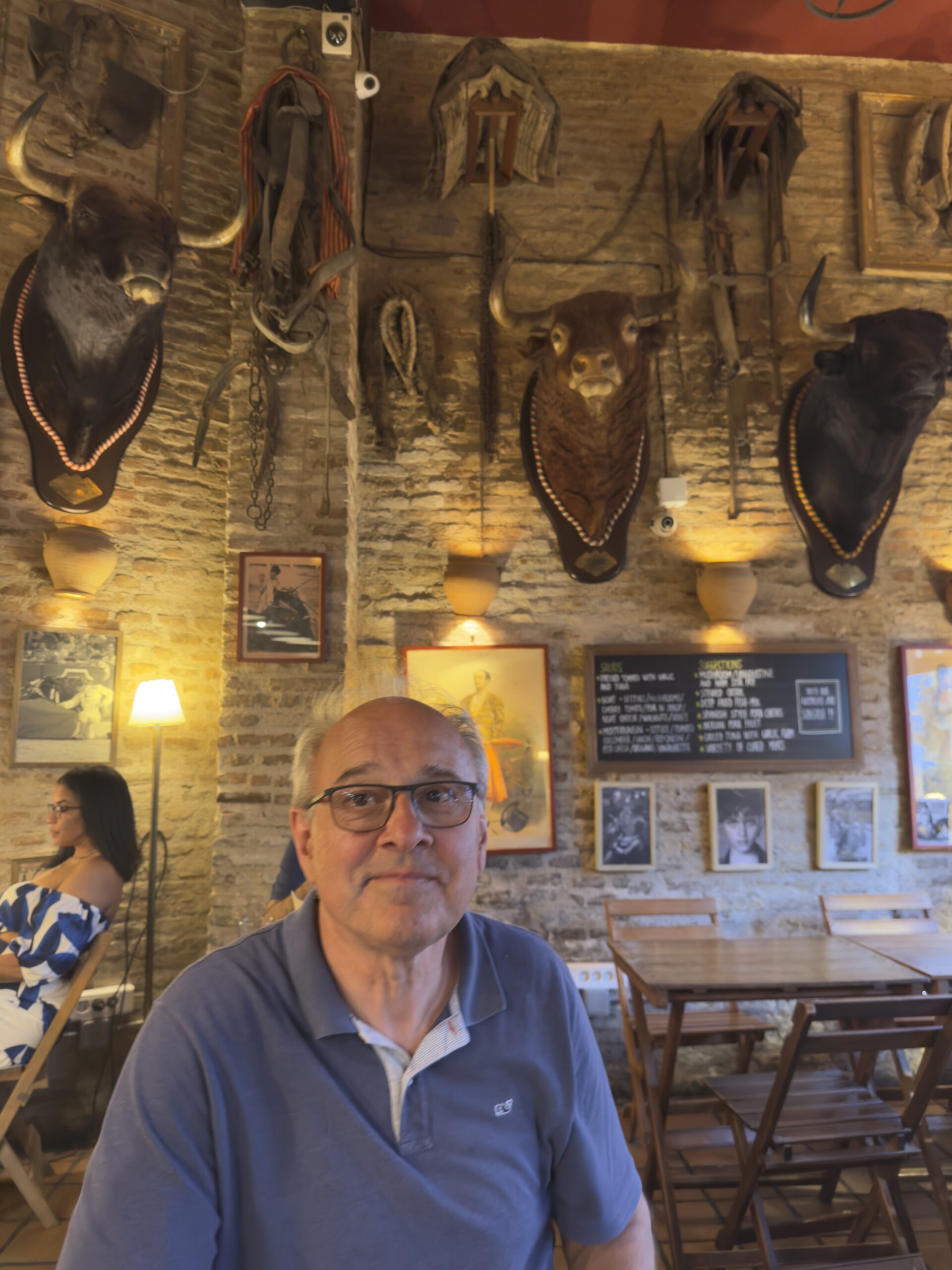 Stigli smo u Sevilju predveče i večerali u jednom interesantnom restoranu (“Pepe Hillo”). To veče smo se prvi put čuli sa Mašom, bila je razočarana što se nismo vratili sa sastanka sa prijateljima, i oduševljena volovima na zidu! 🙂